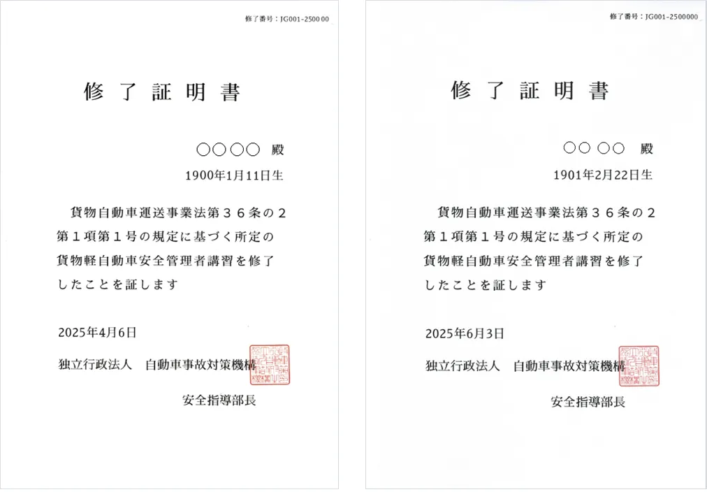 当社では今年の法令改正施行により2名の貨物軽自動車安全管理者が必要になるとの事でしたが、先日やっと2人目が講習受講終了しました。